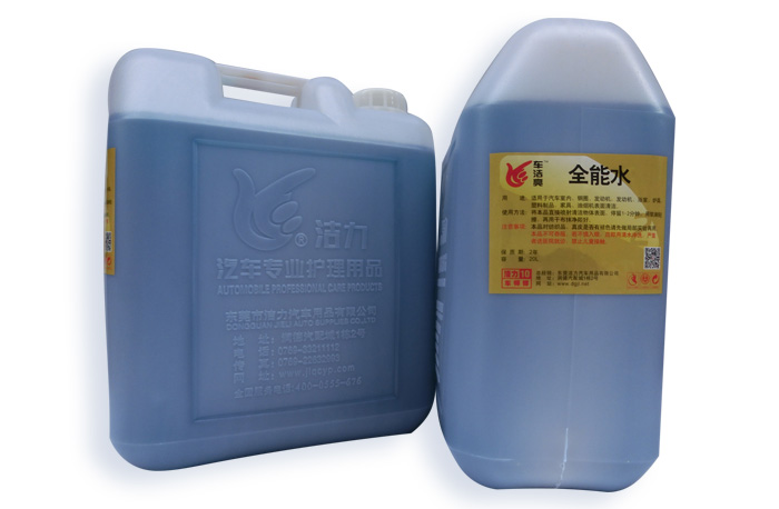 产品介绍:全能水PH值碱性,含有表面活性剂、柔软剂、抗静电剂,可深层清洁织物表面污垢,气味清新,对于汽车内部塑胶起到清洁,杀菌,消毒,保养上光作用,并具具有还原,增新等功能。